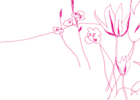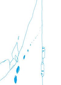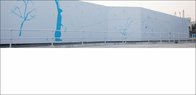 When you go there to see the walls you will find a group of highrise buildings in Roppongi over the walls, and the construction site and big cranes inside the walls, in contrast with Yukari's delicate lines. The walls look like a kind of nature preserve, or a paradise of the town.
