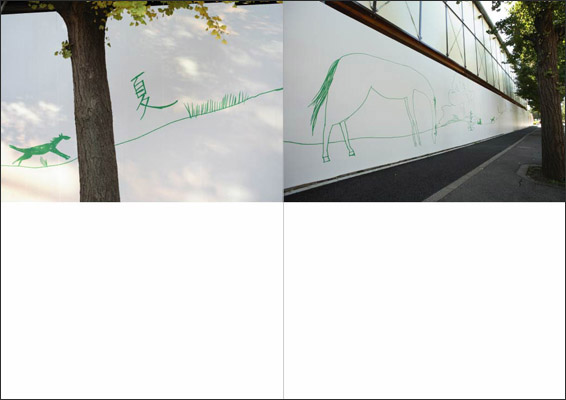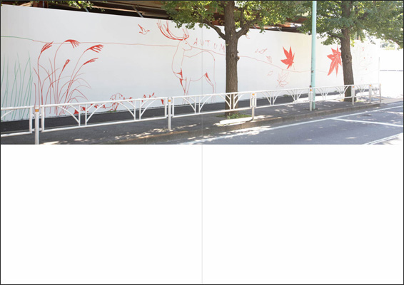 Yukari Miyagi, an Illustrator, who is the author of "The Deer-Star" and "Rabbit and Turtle," participated the project of murals for temporary walls in Hiroo, Tokyo. Hiroo is the one of the topical spots in Tokyo, which is next to Roppoingi, Ebisu and Aoyama. She drew a polar bear, a deer, a colt, a dragonfly, a butterfly, birds, flowers, trees and landscapes of four seasons in lively description.