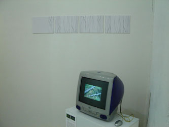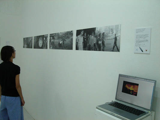 本の内面のモノクロ写真と、モニターによるウェブ作品(フォトムービー)の展示。